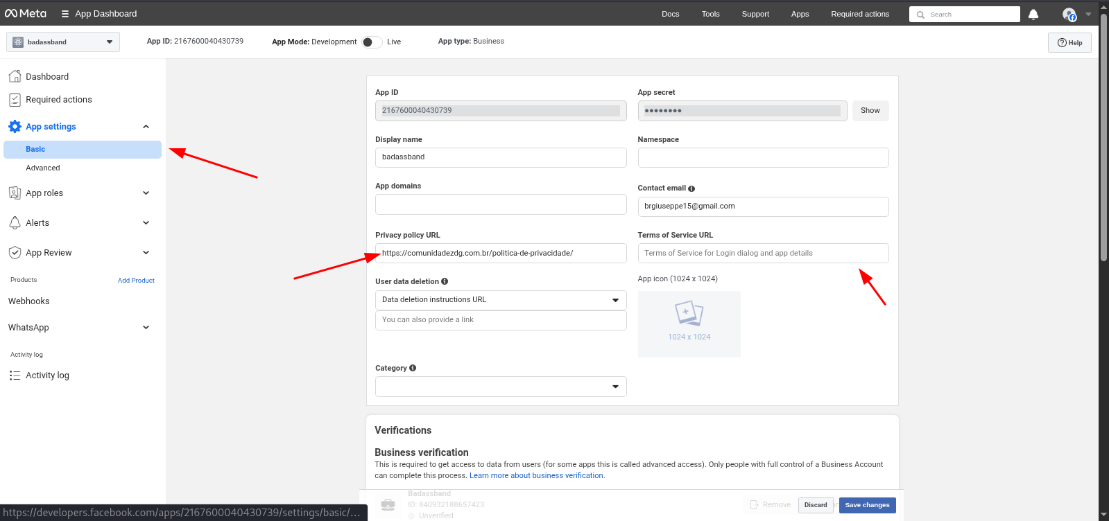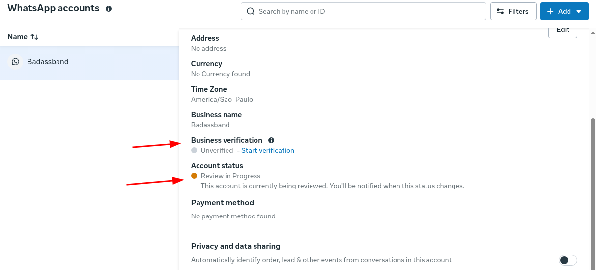 Para termos acesso a API necessitamos estar com o negócio verificado também, ainda na pagina da conta do whatsapp, conseguimos acompanhar o status tanto da conta quanto da verificação do negocio