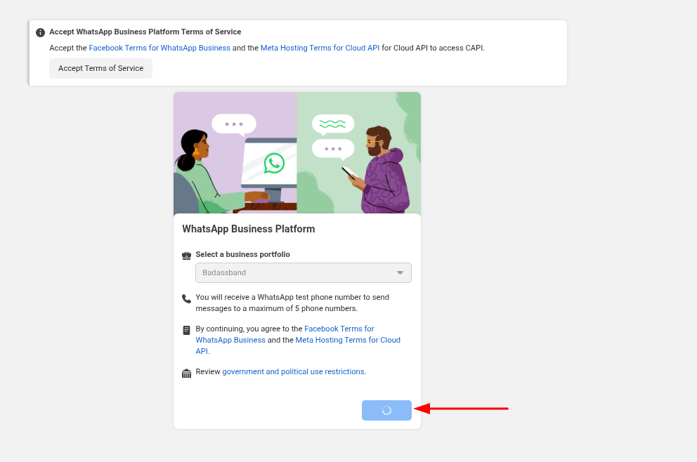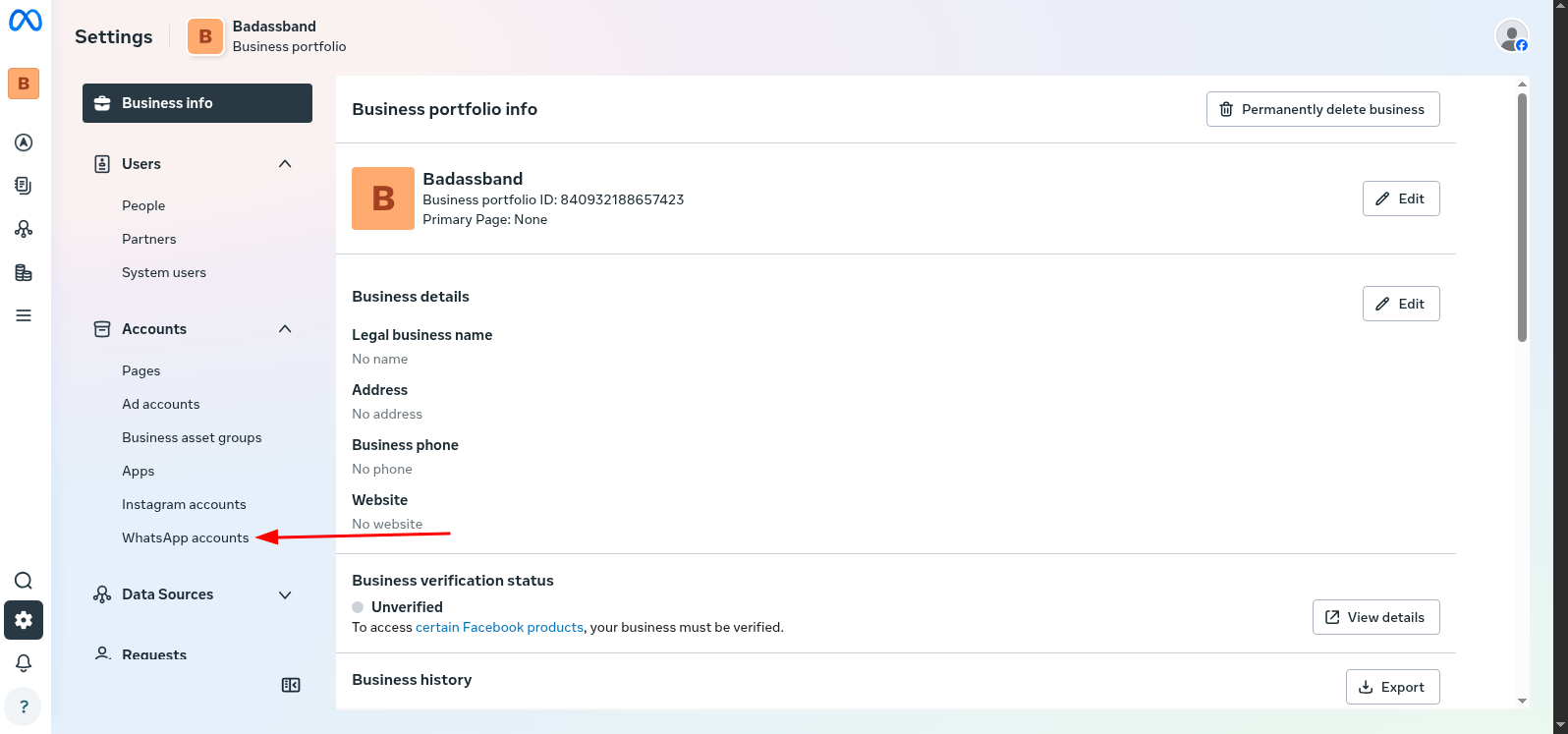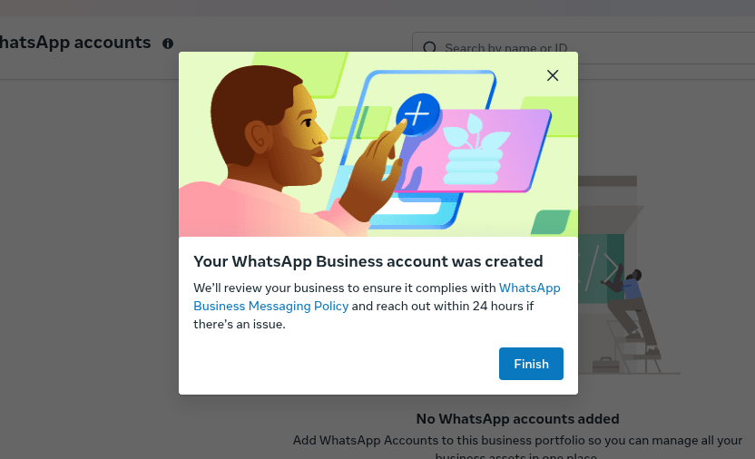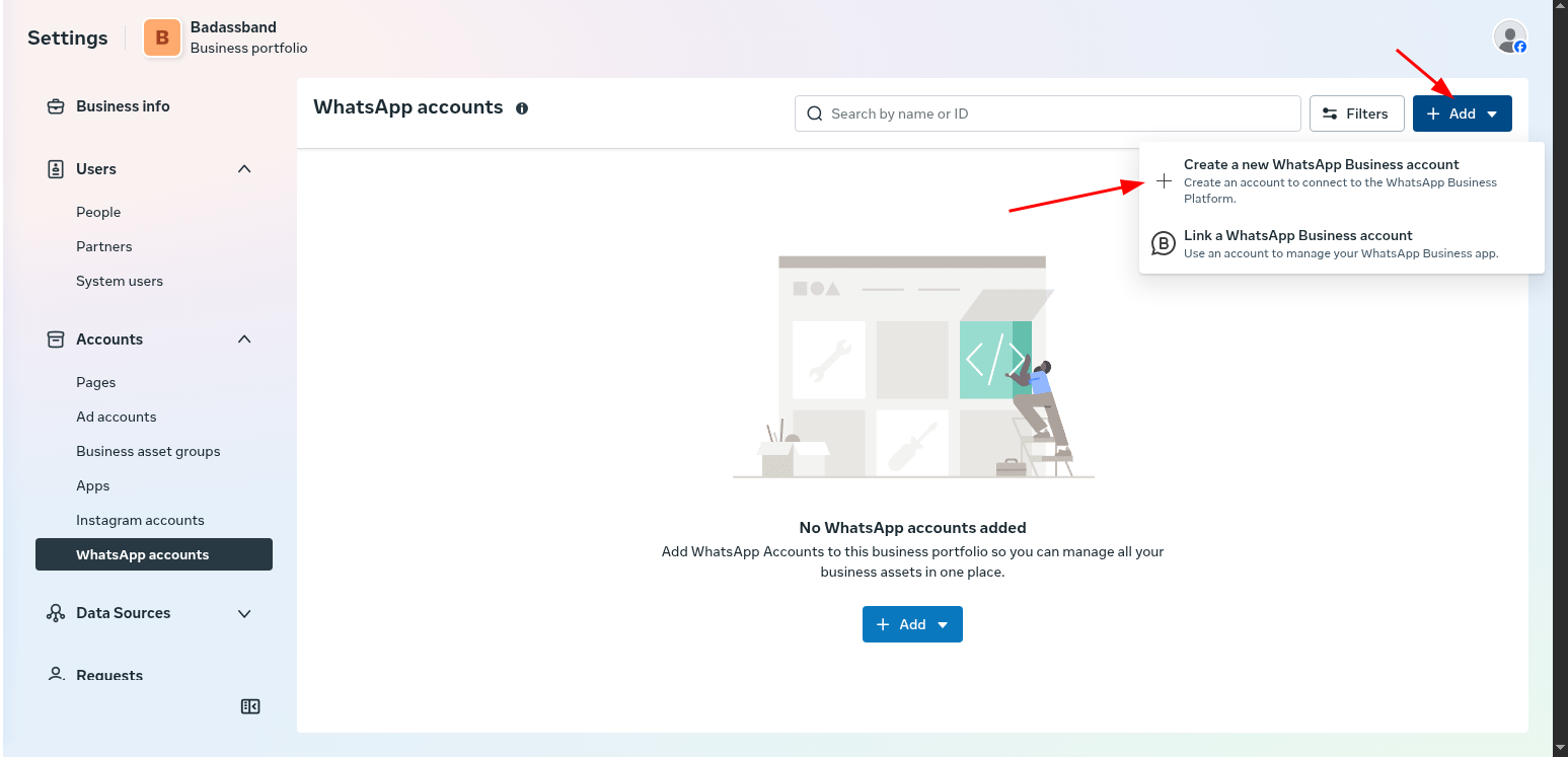 vamos em add > create new whatsapp business account