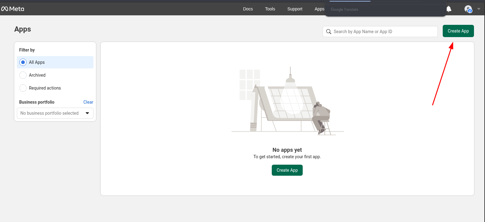 Acessamos https://business.facebook.com/ e realizamos login na conta que está cadastrada o portfólio