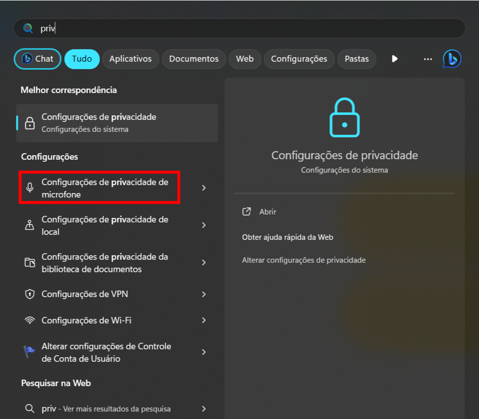 Este cenário acontece por conta de algum bloqueio de microfone pelo sistema  operacional, normalmente nas configurações de privacidade do computador. Segue abaixo como podem verificar: