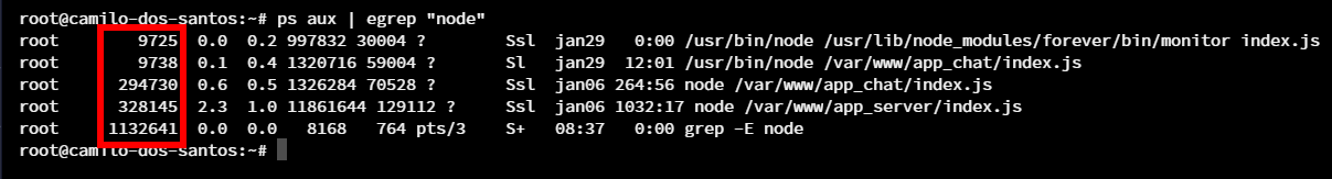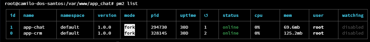 pm2 list —-------> Para listar os processos que estão rodando através do PM2