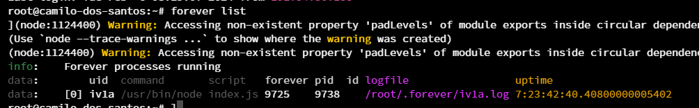 forever stop index.js —-> vai parar o processo do index.js que é o node principal
