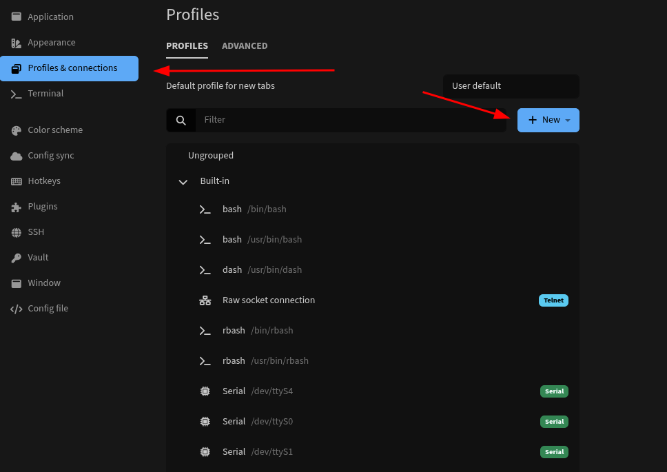 1° passo: entrar no Tabby e criar um novo perfil de ssh