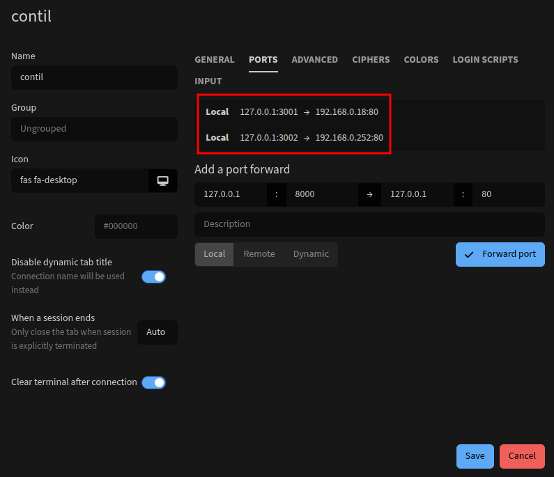 Obs: No linux, não fazer o redirecionamento para as portas 1000, de preferência escolha as de porta 3000